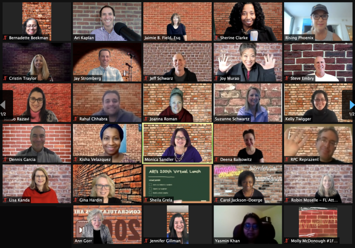 Today, Monday, December 21, 2020, was the 200th #virtuallunch! We celebrated the milestone with matching brick wall backgrounds and a wonderful discussion about becoming a ‘quaranteam’, the importance of appreciating good health, measuring how we have each paid it forward this year, and being more introspective as we close out 2020. My key takeaways were: (1) Identify what is important; (2) Survivor’s guilt is a reality in the current climate; (3) Realizing that there is more to appreciate beyond credentials and work, you may increase your level of happiness; (4) Value the intangibles; and, (5) Define accomplishments broadly as doing so may reduce anxiety. Thanks so very much to attendees Bernadette Beekman, Jaimie Field, Sherine Clarke (for making such a fantastic video compilation :), Cristin Traylor, Jay Stromberg, Jeff Schwarz, Joy Murao, Minoo Razavi, Rahul Chhabra, Gina Hardin, Suzanne Schwartz, Kelly Twigger, Dennis Garcia ⚖, Ginger Shimp, Kisha Velazquez, MBA, Monica Sandler, Joanna Roman, Melissa “Rogo” Rogozinski, Christopher O’Connor, Stephen Embry, Deena Baikowitz, Lisa Kanda, Sheila A. Grela, Carol Jackson-Doerge, Robin Moselle, Ann Gorr, Jennifer Gillman – Law Firm Matchmaker, Yasmin Khan, and Molly McDonough.