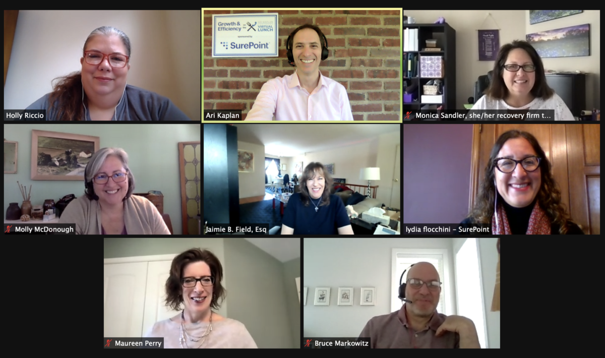 Thanks to Lydia Flocchini of SurePoint Technologies for leading a great #FeedbackForum discussion today, Wednesday, May 12, 2021, on the #VirtualLunch about building community, the limits associated with that effort, and the importance of leadership to helping it thrive. I am grateful to Lydia and Surepoint for supporting our May series on #GrowthandEfficiency, and to attendees Molly McDonough, Maureen Perry, Bruce S. Markowitz IGP, Holly Riccio, Jaimie Field, and Monica Sandler, MCOM, MCT.