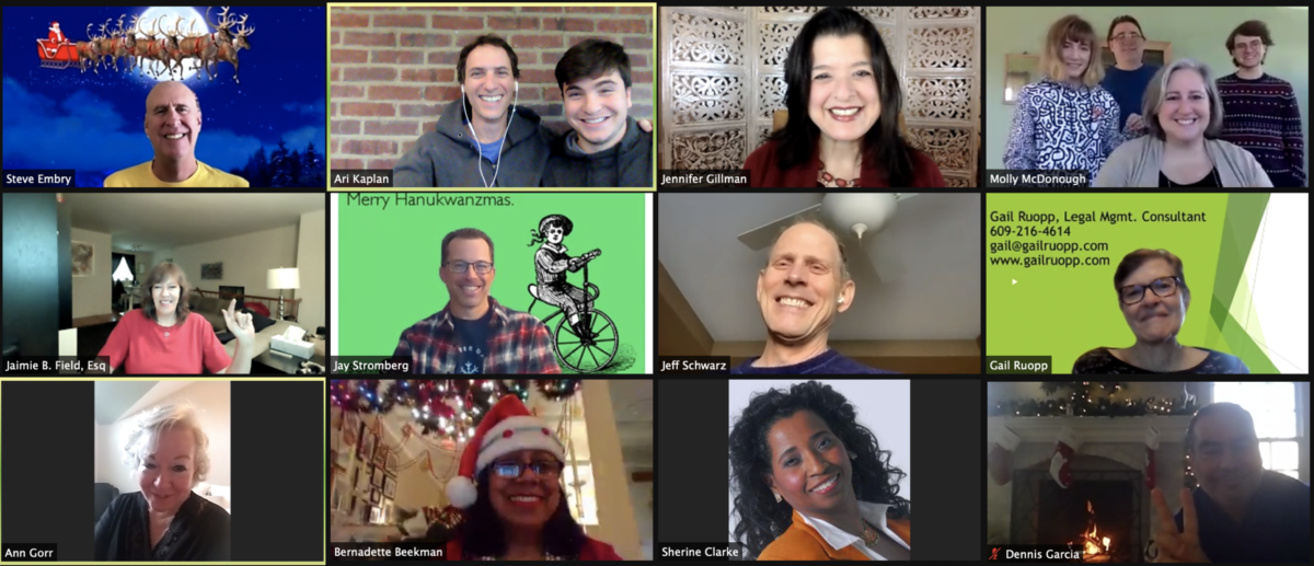 The #virtuallunch today, Friday, December 25, 2020, with Stephen Embry, Jennifer Gillman – Law Firm Matchmaker, Molly McDonough, Jaimie Field, Jay Stromberg, Jeff Schwarz, Gail Ruopp, Ann Gorr, Bernadette Beekman, Sherine Clarke, Dennis Garcia ⚖, and Bill Schweber was filled with great conversation about creative recipes, missing travel, personal isolation, pursuing your passion (demonstrated by Ann Gorr’s remarkable renditions of Ave Maria and Angel’s Lullaby :), traveling choirs, the McRib, and Christmas Day traditions. Thank you all!