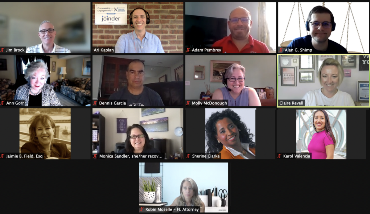Another great discussion on the #VirtualLunch today, Thursday, June 10, 2021, about the appropriate ways to discuss the pandemic with peers and prospective employees, post-pandemic gratitude, and Focusmate, among other accountability options for productivity. Thanks to Jim Brock of Joinder for participating and supporting our series on #EmpoweringEngagement, as well as attendees Adam Pembrey, Jaimie Field, Ann Gorr, Dennis Garcia ⚖, Molly McDonough, Claire Revell, Monica Sandler, MCOM, MCT, Sherine Clarke, Karol Valencia, Robin Moselle, and Alan Shimp.