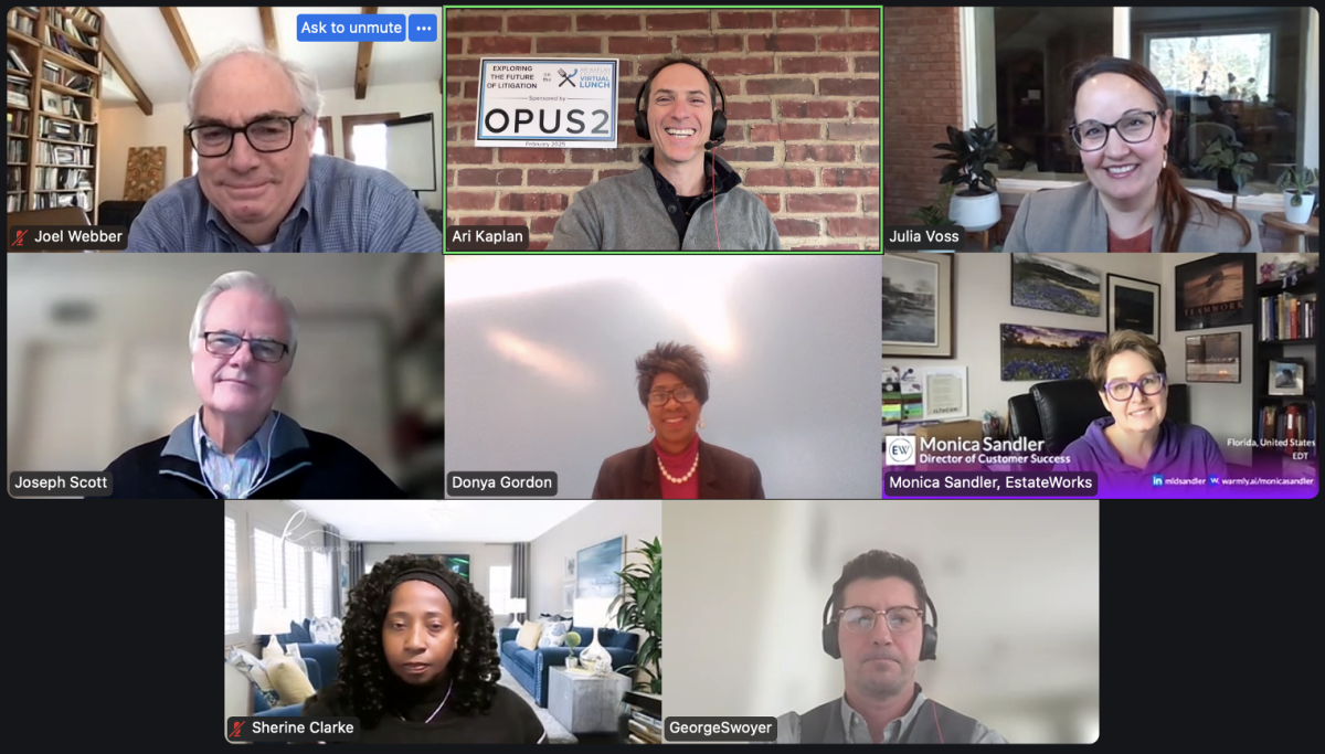 Thanks to Opus 2 for supporting our series on #ExploringtheFutureofLitigation, and to attendees Joel Webber, Sherine Clarke, George Swoyer III, Joseph Scott, Monica Sandler, and Donya Gordon.