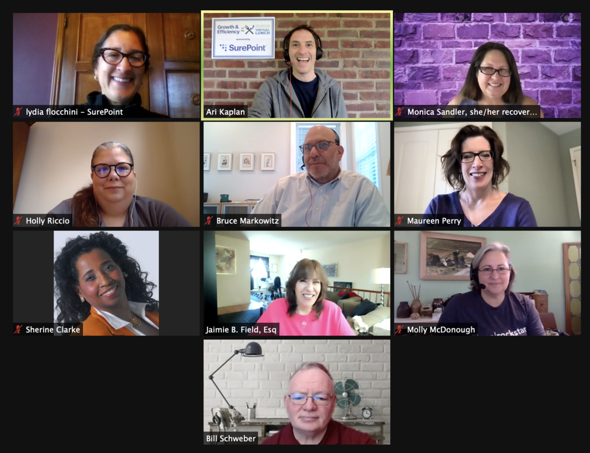 Today, Thursday, May 13, 2021, on the #VirtualLunch, we discussed the keys to thriving in a hybrid workplace, management dynamics associated with the ‘return’, and enhancing culture remotely. Thanks to Lydia Flocchini of SurePoint Technologies for participating and supporting our May series on #GrowthandEfficiency, and to attendees Monica Sandler, MCOM, MCT, Holly Riccio, Bruce S. Markowitz IGP, Maureen Perry, Sherine Clarke, Jaimie Field, Molly McDonough, Adam Pembrey, and Bill Schweber.